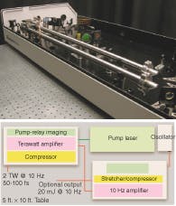 Modular turnkey terawatt systems such as these are convenient to install and maintain. We have developed a system that fits easily on a 5 × 10 ft optical table, making it ideal for a wide variety of research areas that require ultrashort, high-intensity pulses (see Fig. 3).