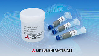 MITSUBISHI MATERIALS provide excellent solutions to customers’ thermal management issues using the patented Au78/Sn22 solder pastes with great benefits, such as high tensile strength, high-melting point (280C) for compatibility with subsequent reflow processes, high thermal and electrical conductivity, resistance to corrosion, and excellent wetting. For samples please inquire from the URL below.