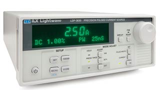 The LDP-3830 Pulsed Precision Current Source is specifically designed for controlling laser diodes and quantum cascade lasers and is ideal for single-emitter VCSELs or VCSEL arrays. It provides an adjustable peak pulse current of up to 5A with a compliance voltage of up to 20V, adjustable pulse widths from 25 ns to 1 µs, and an adjustable duty cycle from 0.01% to 5.00%.