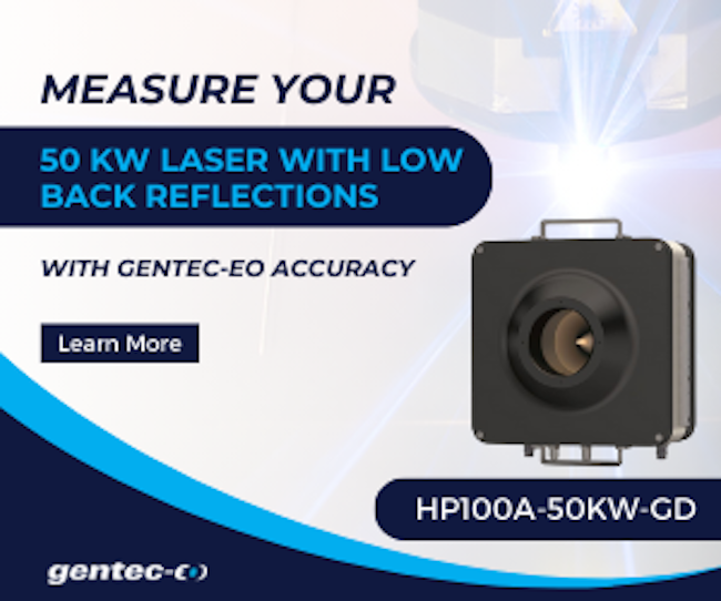 High average power density lasers used in applications such as metal cutting require particular attention to avoid damaging the measurement equipment and to keep the work environment safe. The HP100A-50KW-GD laser power detector features a gold cone absorber that can withstand 25 kW/cm² and has back reflections of just ~2.5%.