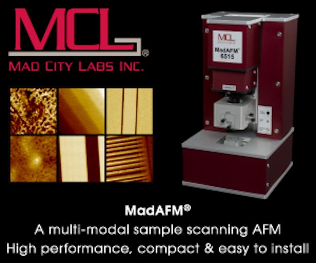 | | Sponsored | | MadAFM® is a sample scanning AFM that offers high performance, tabletop design and user friendly features. MadAFM® is powered by Mad City Labs industry leading nanopositioners giving exceptional precision and performance. MadAFM® offers over 15 microscopy modes, automated calibration and initialization features, user friendly probe exchange and is simple to install. |